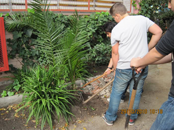 La primera fase és la que es va realitzar el passat dia 29 d’octubre, amb l’inestimable ajut de 10 alumnes de 2n ESO de l’INS Santa Eulàlia que juntament amb el seu professor Josep Escat van estar podant i netejant el jardí. En acabar també van gaudir d’un merescut descans i reposició de forces amb la festa de la castanayada que també vam celebrar.