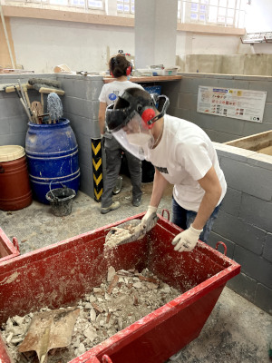 Ja tenim en funcionament la nova deixalleria del taller de construcció on disposem de diversos contenidors on separar la fusta, la ferralla, el guix laminat, el rebuig i la runa que reciclem amb la nova trituradora Triton.