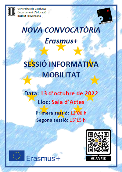 S’ha obert la nova convocatòria de mobilitat per a alumnat del curs 2022-2023. La convocatòria permet la realització de les pràctiques del Mòdul de Formació en Centres de Treball (FCT) o com a recent titulats a diferents països participants en el programa Erasmus+.