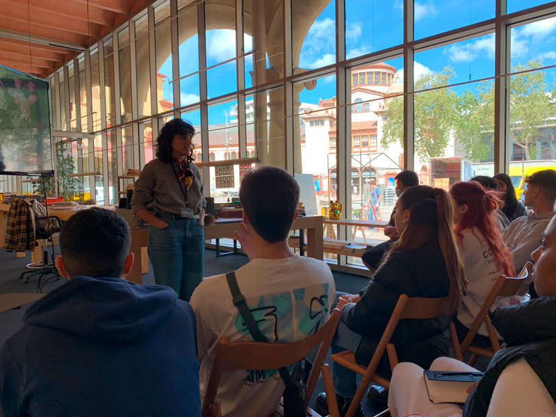Durant la visita, l'Anabel de la Paz, responsable de l'arxiu, biblioteca i patrimini del Teatre Lliure, ens van explicar que és el teatre en general i quin va ser l’origen i la història del Teatre lliure en concret.