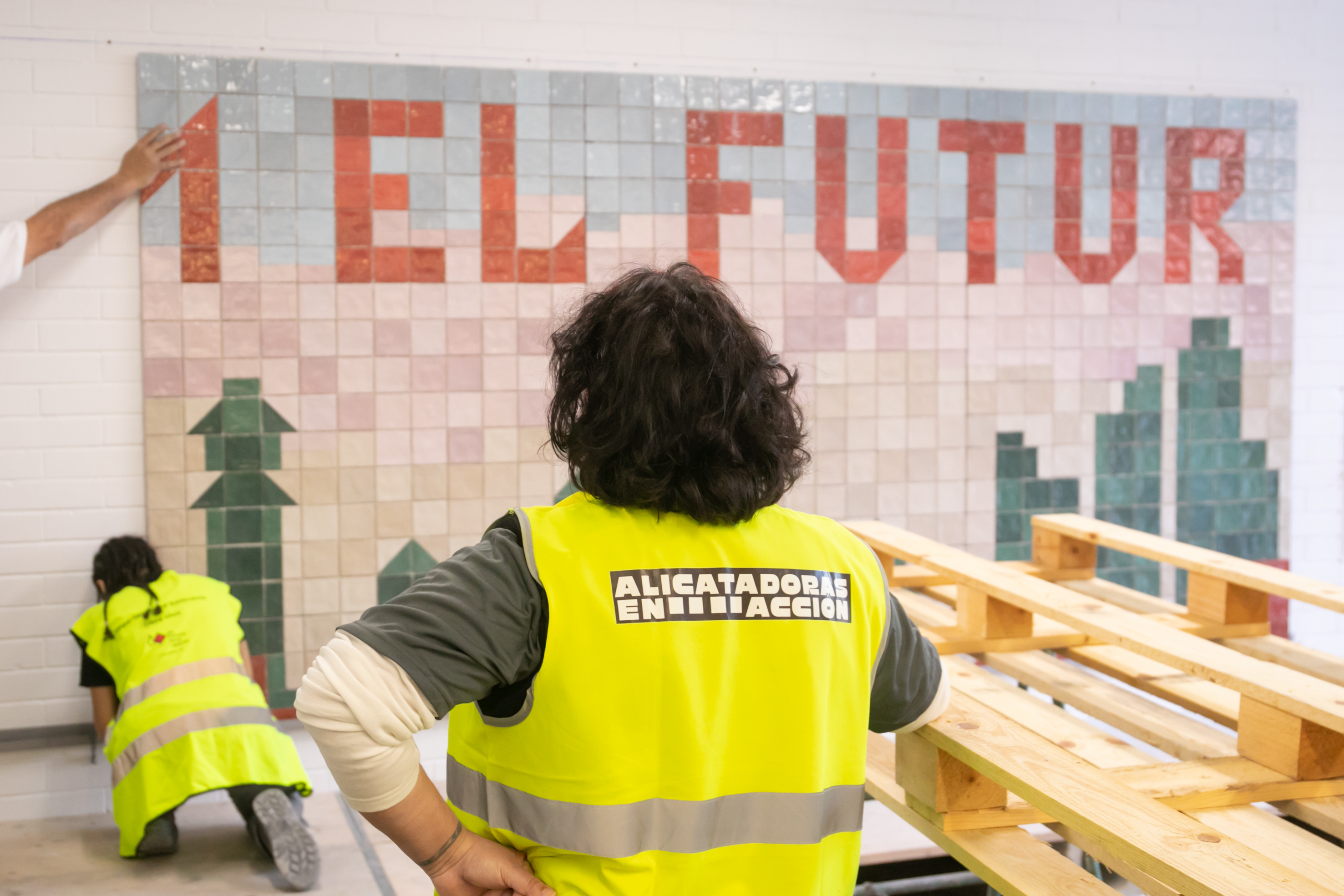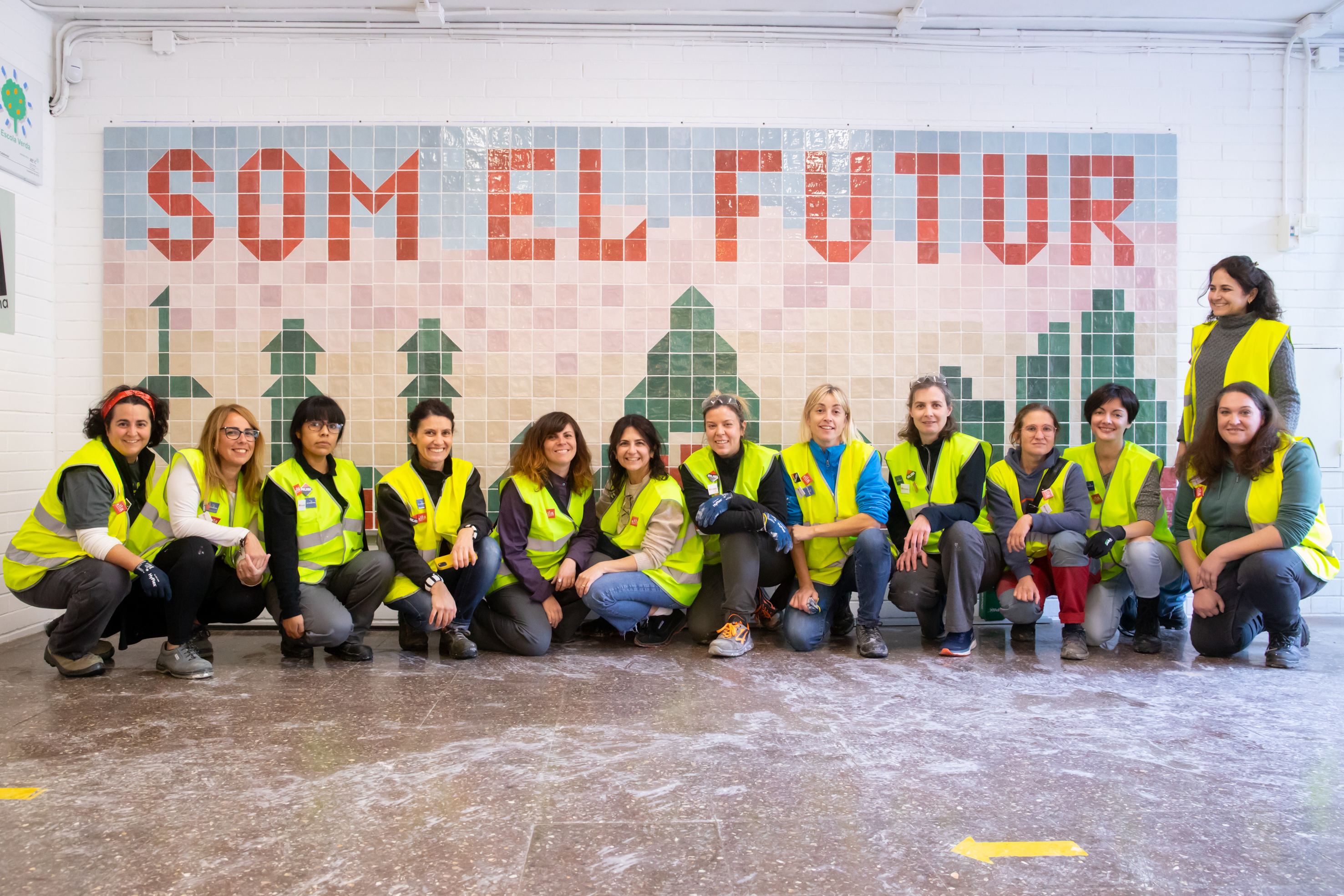 Per posar-vos en antecedents, sapigueu que aquest és un mosaic realitzat dins d'un curs de formació extern (a les instal·lacions de RUBI Tools a Santa Oliva, Tarragona) sobre la col·locació ceràmica, impartit per PROALSO (Associació Professional d'Alicatadors i Soladors), promogut per ELLA CONSTRUYE (Constructora que treballa per fomentar la inserció laboral de la dona en el sector de la construcció a peu d'obra) i amb el finançament de RUBI (fabricant d'eines per a la col·locació ceràmica) més el GRUPO PUMA (fabricants de morters cola).