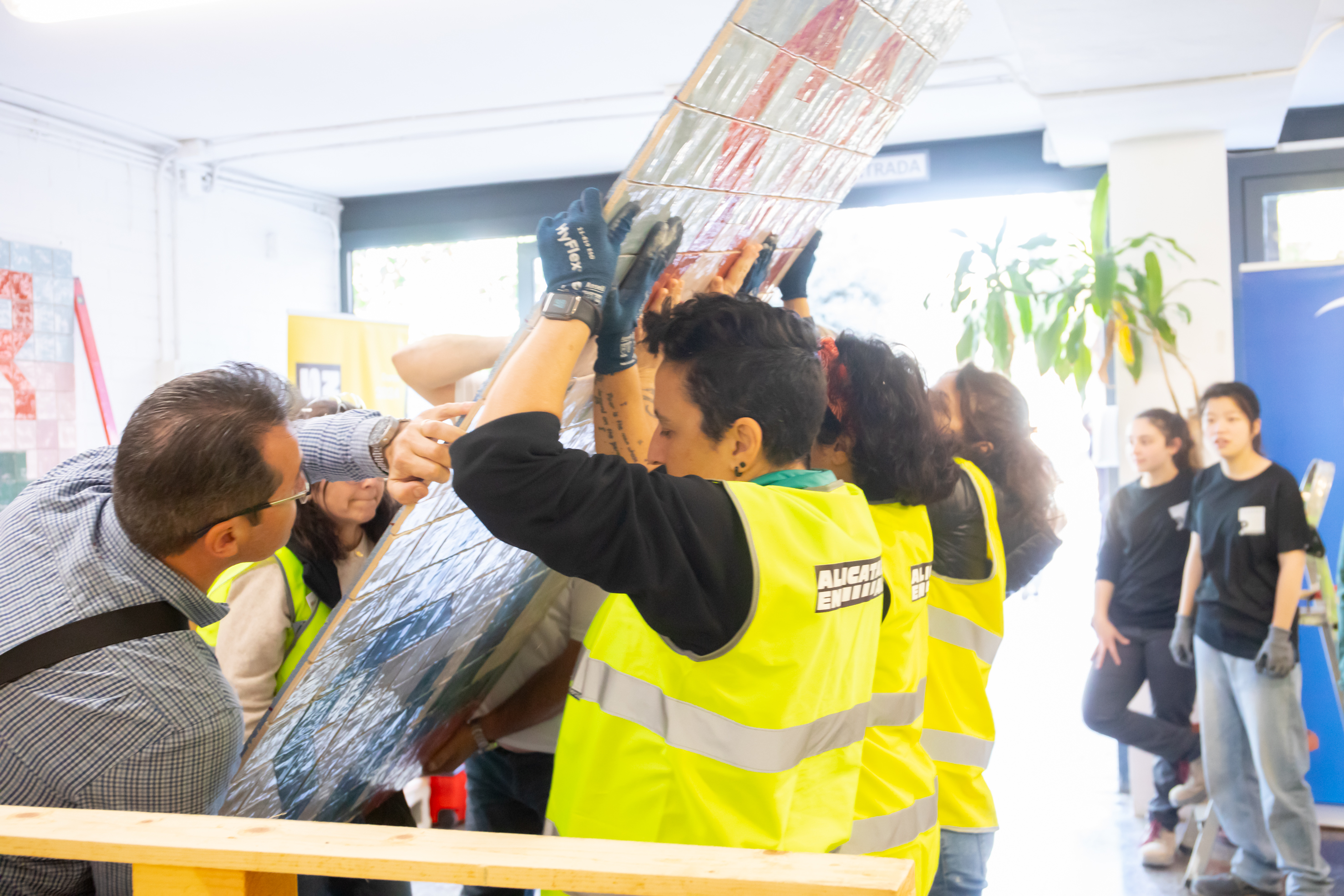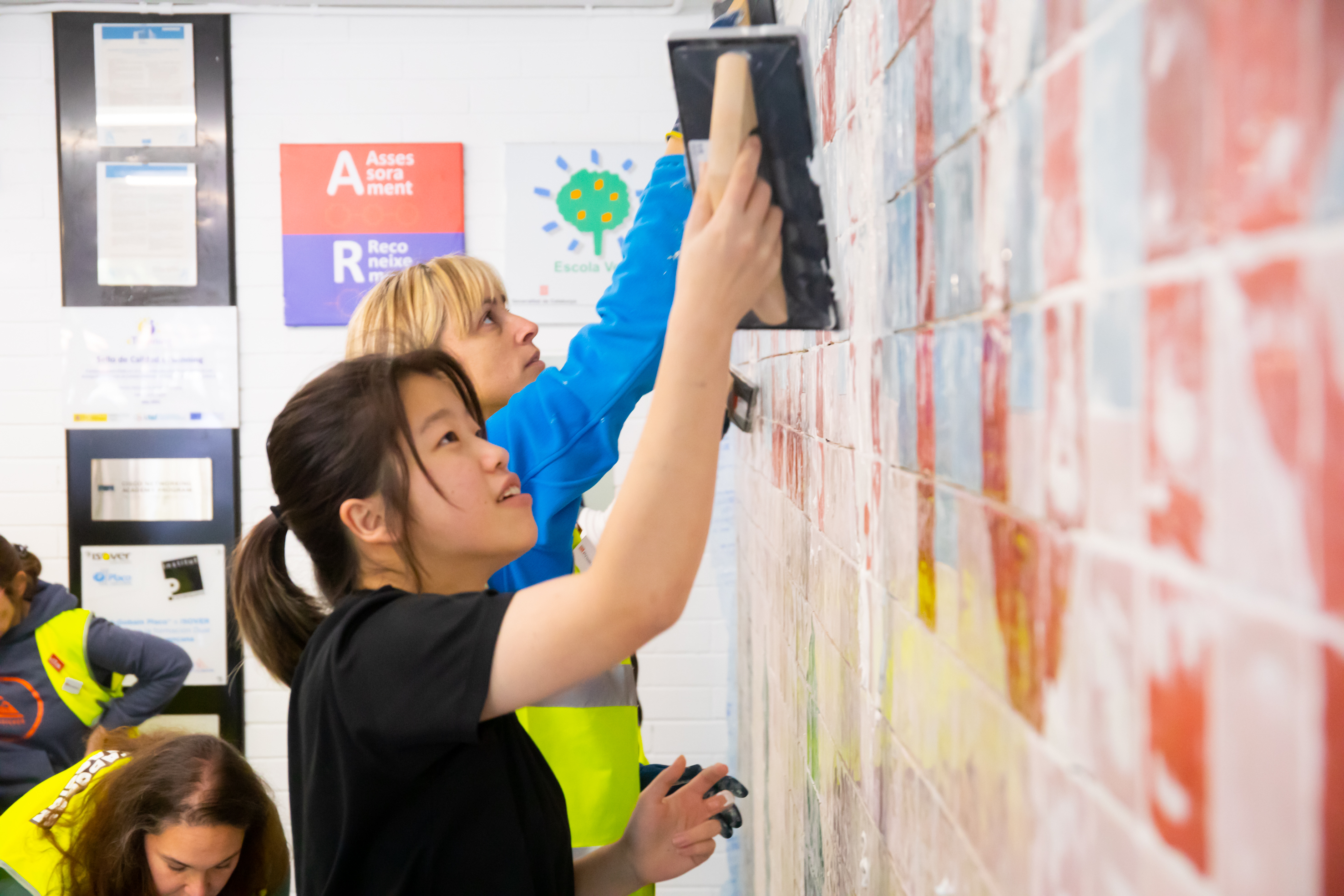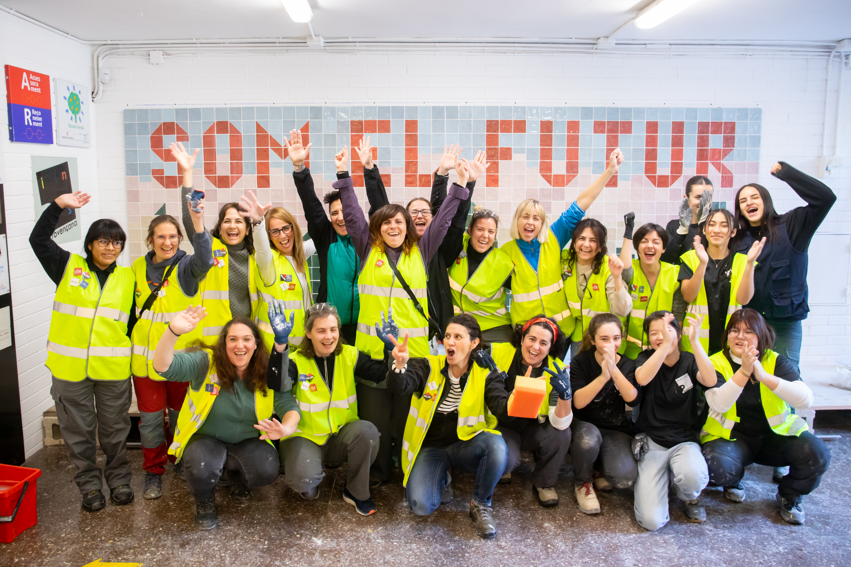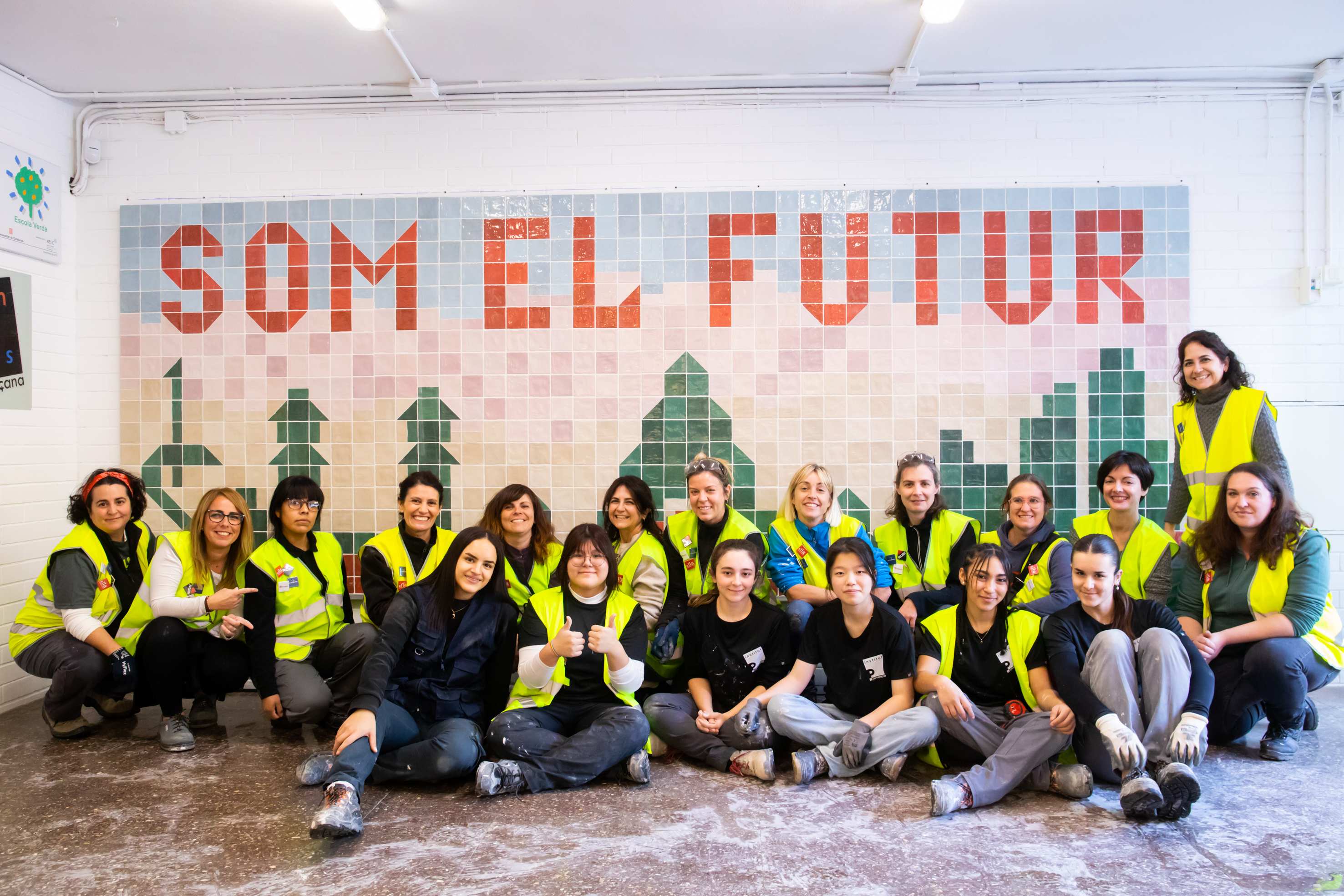 Ella Construye va proposar al nostre centre realitzar un concurs per escollir un disseny guanyador. Aquest disseny és el que s'ha realitzat durant la formació de Tarragona i que finalment es va instal·lar divendres passat. El guanyador del concurs ha estat l'alumne de construcció de segon Rubén Castillo Manay, i en la instal·lació del mosaic van participar les 6 alumnes del curs de primer de construcció.