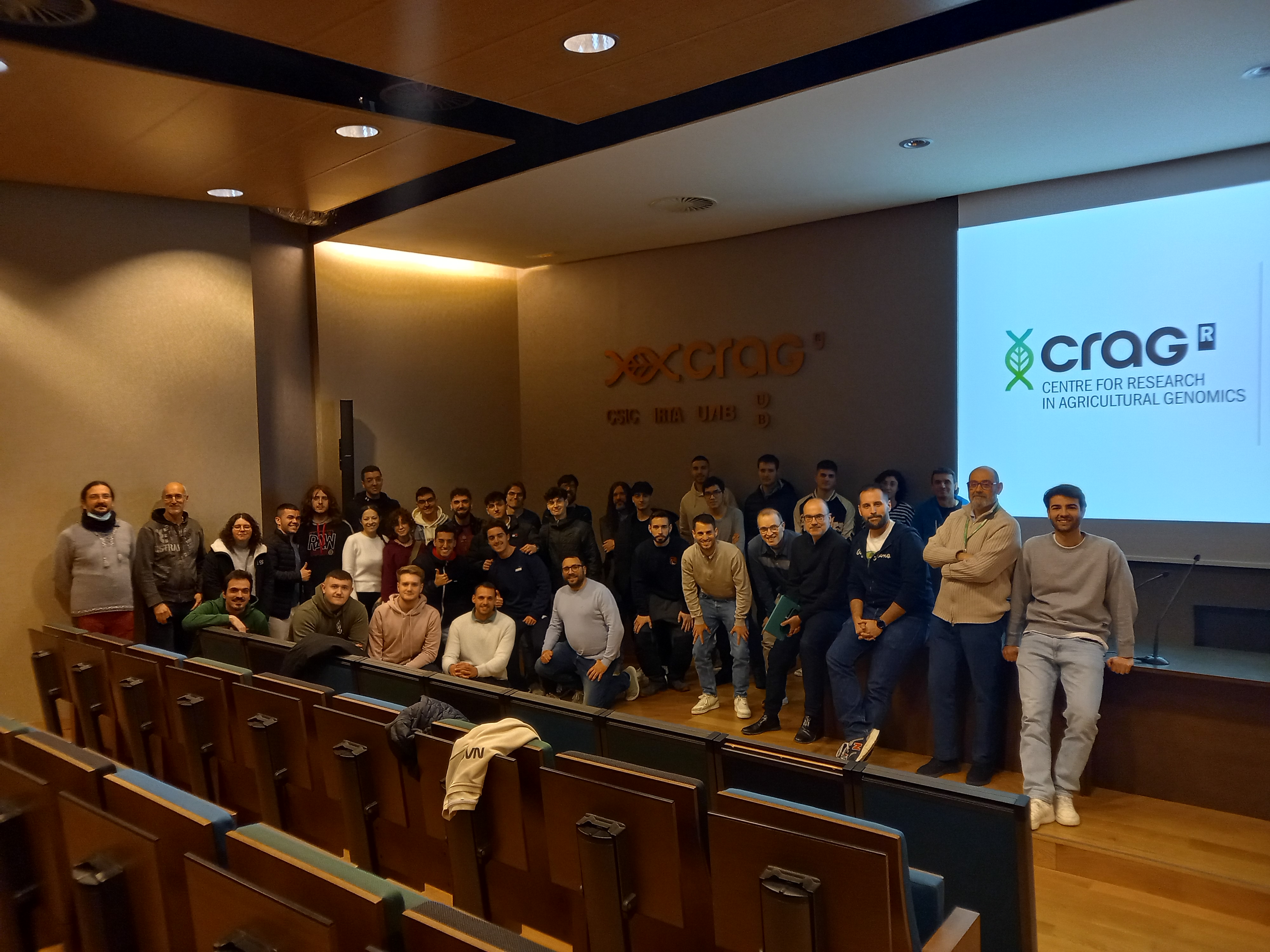 L’equip de la unitat de Bioinformàtica del CRAG va rebre els estudiants a l'auditori on va tenir lloc una petita presentació de l'estructura organitzativa del centre i quins son projectes que duen a terme. Acte seguit, un estudiant de doctorat va compartir els resultats de la seva tesi en la que ha aplicat tecnologia d’intel·ligència artificial sobre problemes reals de l'àmbit agrícola.