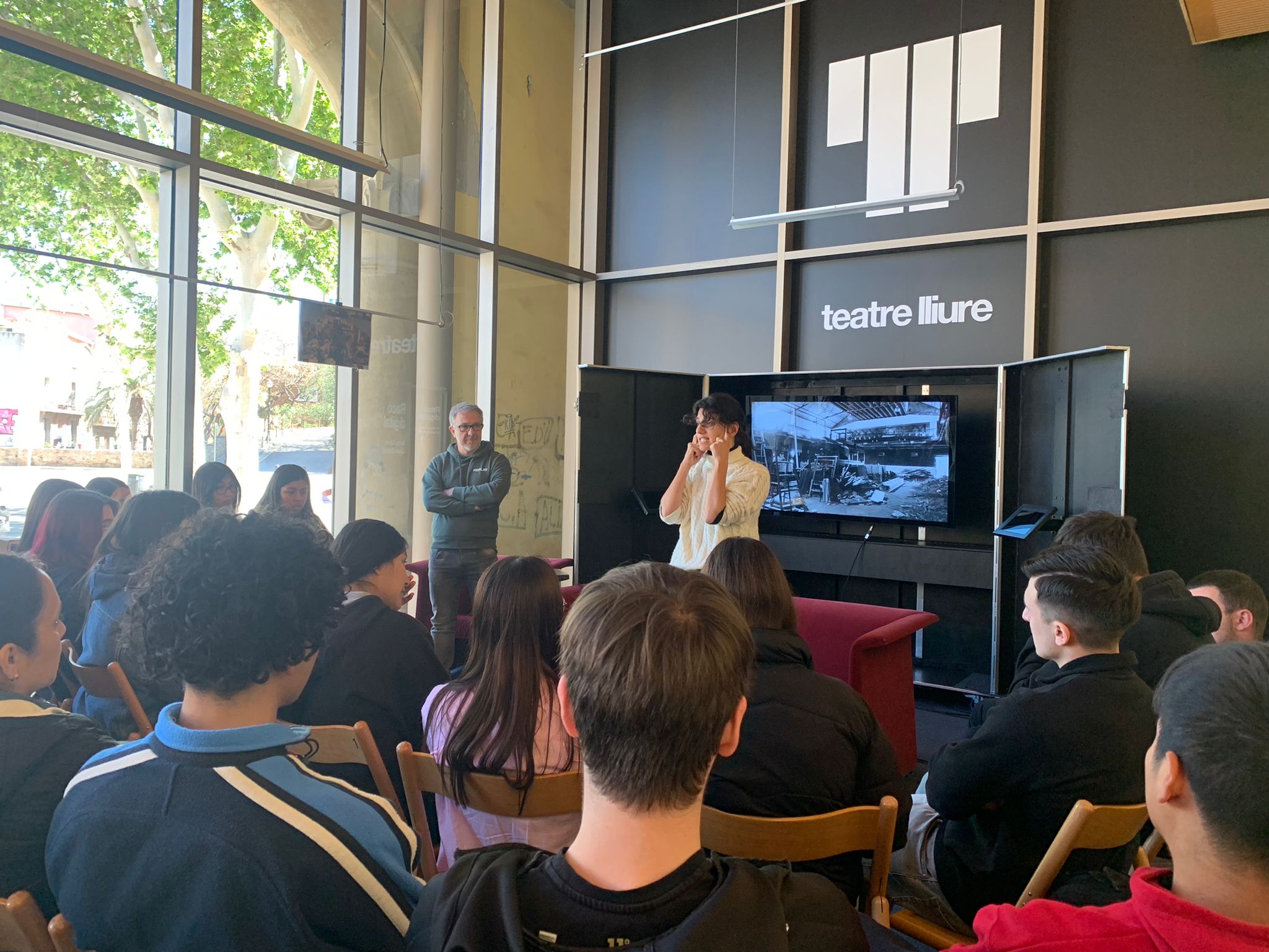 Enguany ha estat molt especial perquè hem pogut visitar l’edifici del Teatre de la mà de l’Ona, responsable de grups i lloguer d’espais, ella ens van explicar que és el teatre en general i quin va ser l’origen i la història del Teatre lliure en concret, vem entrar a lloc on el públic general no accedeix mai. L’Annabel, responsable de l'arxiu, biblioteca i patrimoni, que ens van fer reflexionar sobre la importància de com guardar allò que és efímer, i la importància del poder de la imatge i del record per poder explicar la història d'una forma objectiva. Y finalment, en Xavi, el cap de comptabilitat, en va explicar com funciona econòmicament el Teatre i les seves produccions.