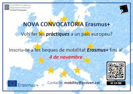 S’ha obert la nova convocatòria de mobilitat per a alumnat del curs 2022-2023. La convocatòria permet la realització de les pràctiques del Mòdul de Formació en Centres de Treball (FCT) o com a recent titulats a diferents països participants en el programa Erasmus+.