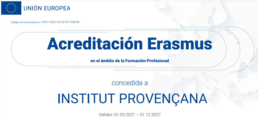 L’Institut Provençana promou a través de la cooperació transnacional amb institucions comunitàries diverses iniciatives per a la mobilitat de persones per a l’aprenentatge, la innovació i millora de la qualitat de la formació professional a través de la Unitat de Programes Internacionals de Formació Professional del Departament d’Educació i del SEPIE.